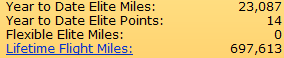 Many who know me know that I spent about 10 years on the road, flying most every week. Well, that life is past for me now and I don’t get out near as much. So imagine my surprise when I log into Continental’s web site and discover that they are now posting your “lifetime mileage”. Below is the snippet of my actual lifetime miles on Continental: