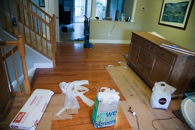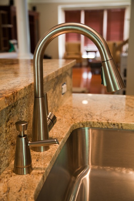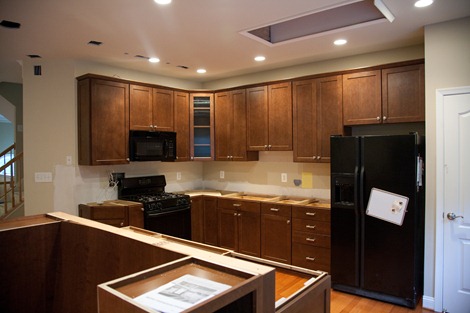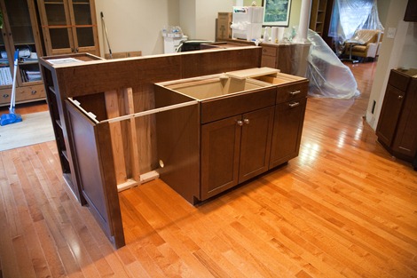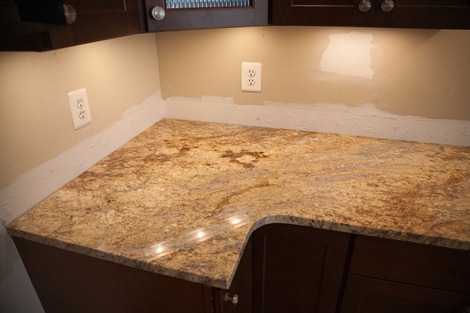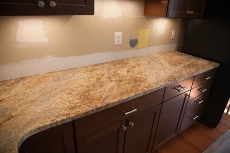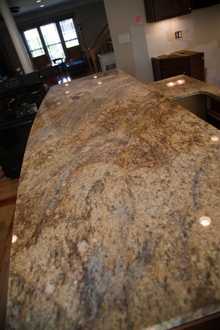 Now, the last of the “big” installs is done. And I mean BIG. They brought up through our crooked staircase a granite slab large enough to crush several men if it fell while they were moving it. All of our counters are seamless sections now. We’re very happy with our fabricators.