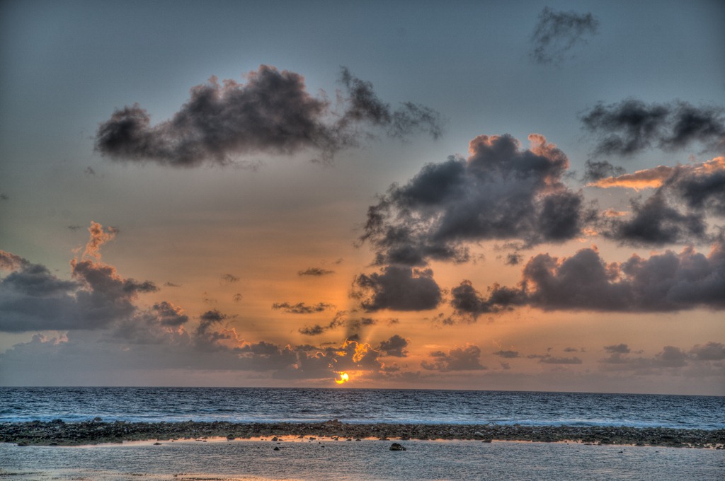 Here’s a picture of the sunrise on our last day on the atoll. (well, it’s got a little extra “dynamic range” but it’s true to the emotion… 🙂 ) This was taken from the deck of our ocean-front cabana.